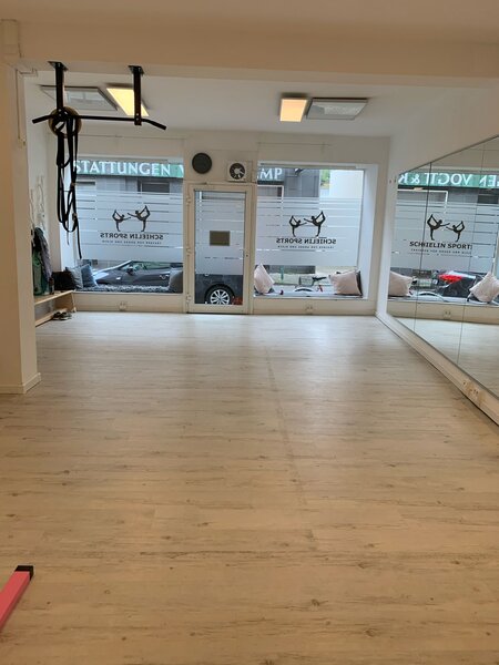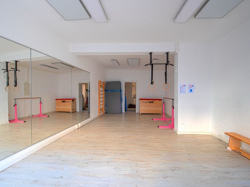 Vorne zur Straße hin liegt ein großer Raum mit zwei Schaufenstern